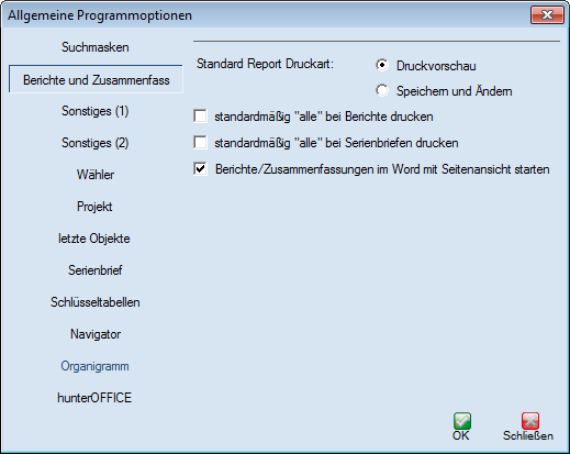 Voreinstellungen für Reports können Sie definieren, welche Standardansicht beim