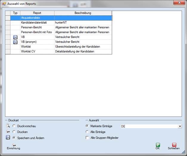 Öffnen eines Allgemeinen Reports angezeigt werden soll. Siehe Reportauswahl.