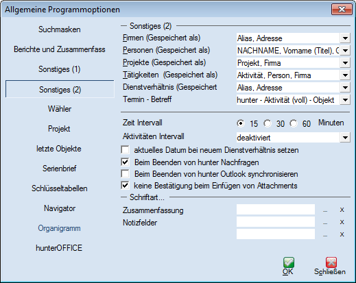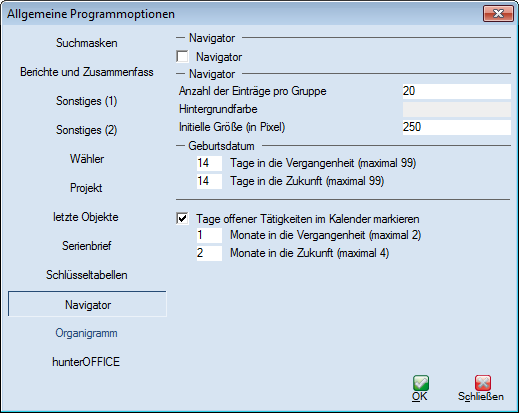 Einstellungen befinden sich die Allgemeinen Programmoptionen mit diversen