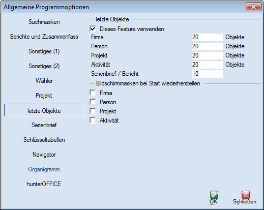 Person/Firma/Projekt wird dieser maximiert dargestellt