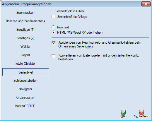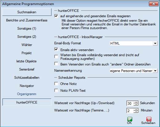 E-Mails benutzen Sie bitte hunterOFFICE manuell.
