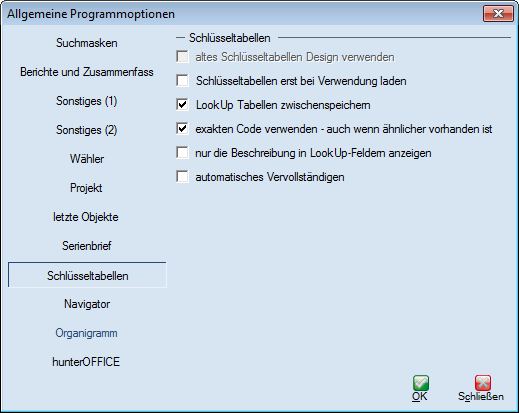 verwendet werden soll und ob die Schlüsseltabellen standardmäßig beim Öffnen