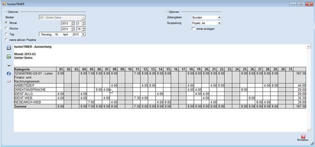 seiner Projekte zuordnen. Ausführliche Auswertungsmöglichkeiten unterstützen