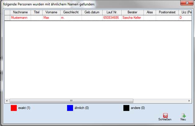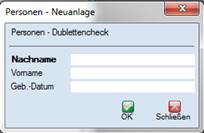 klickt, wird der Dubletten Check abgebrochen und der Datensatz neu erfasst.