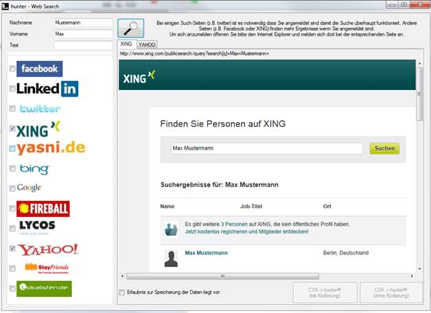 Search durchsucht für Sie die links ausgewählten Plattformen nach Informationen