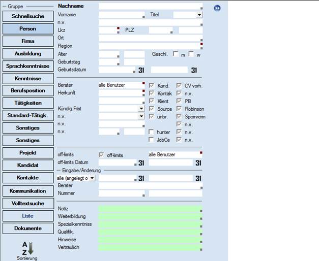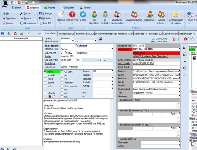 Personen mittels vorhandenen Dokument (CV oder ähnliche) oder direkt von