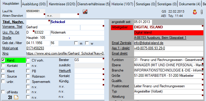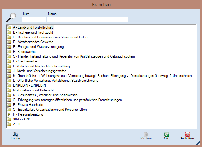 Kodierung von Personen und Firmen zur Verfügung stehen. Diese sind durch den