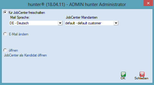 Jobcenter freischalten“ Personen aus hunter den Zugang zum Jobcenter freigeben.