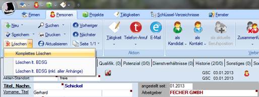 und komplettes Löschen auswählen. Damit werden alle Verknüpfungen zu dieser Person gelöst und anschließend wird die Person gelöscht.