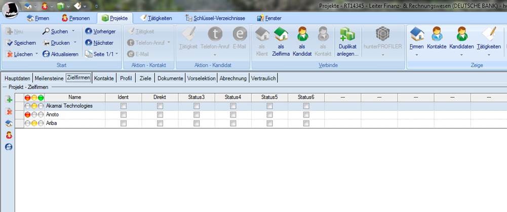 2. Nachdem Sie die Schaltfläche betätigt haben, kehren Sie im Projekt in das Zielfirmen Register zurück.