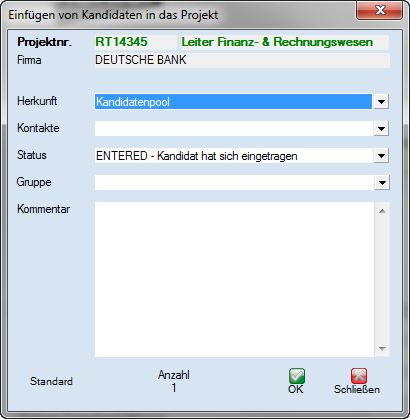 Über dieses Fenster können Sie den Kandidat mit
