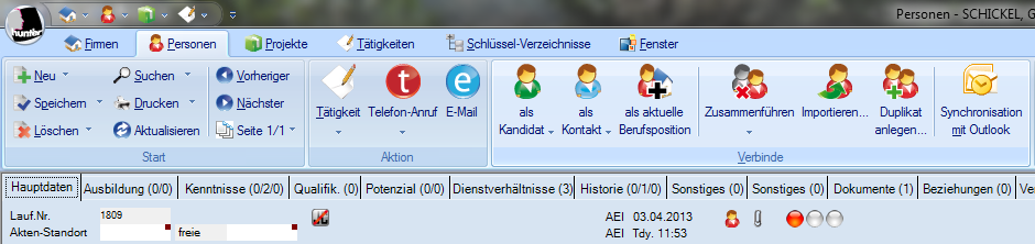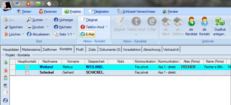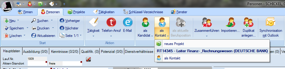 steht die entsprechende Person unter dem Register Hauptdaten, im Feld Hauptkontakt.