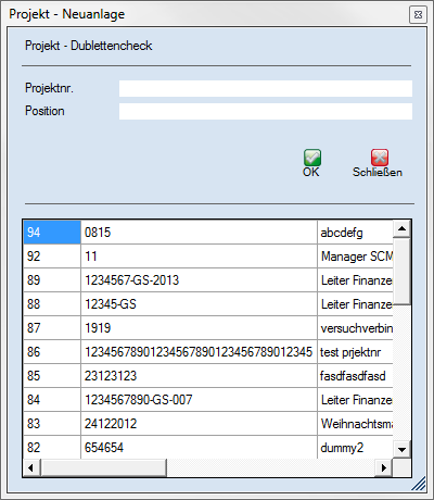 Im Projekt wird zunächst eine neue Projektnr., sowie die Position zwecks Dublettencheck
