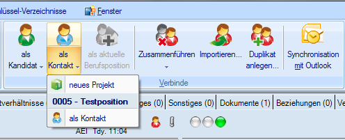 verbinden Sie eine Person zu einem Projekt als Kontakt. Das Projekt muss