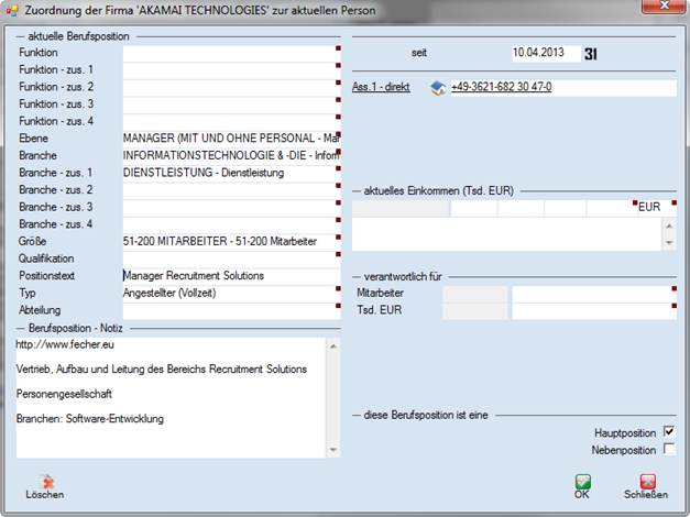 Person mit der Firma verbunden.