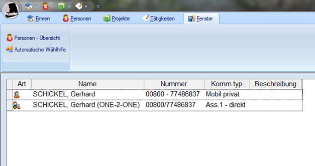 Dokumente aufgelistet und nicht die Personen/Firmen Datensätze. Öffnen können