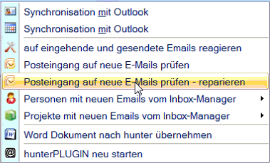 Office-Symbol (rechts oben im hunter) können Sie die REPAIR Funktion manuell