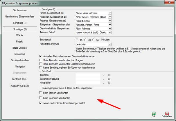 Programmoptionen können Sie einstellen in welchen Situation hunter selbst das